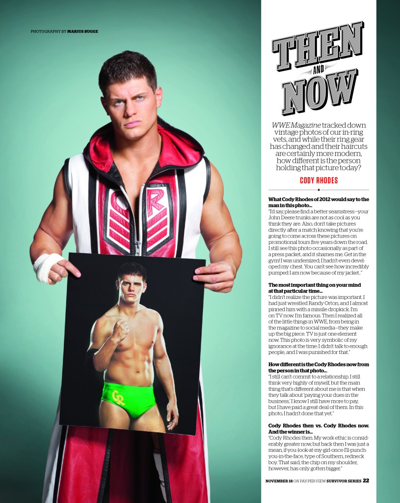 This is another example of creating a feature story that should be relatively simple to shoot/style (subject + seamless + photograph), would deliver some nostalgia while also tying directly to (at the time) the present-day talent, and could then be spun off into a recurring front-of-book page.